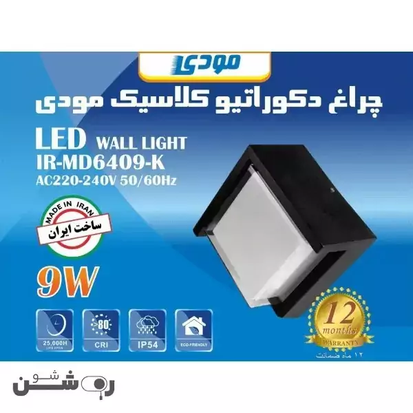 چراغ دیواری مربع کلاسیک 9 وات مودی خیلی باکیفیته و طول عمر زیادی داره. میتونی اونو به راحتی به هر زاویهای نصب کنی و جلوهی زیبایی به فضا بدی.